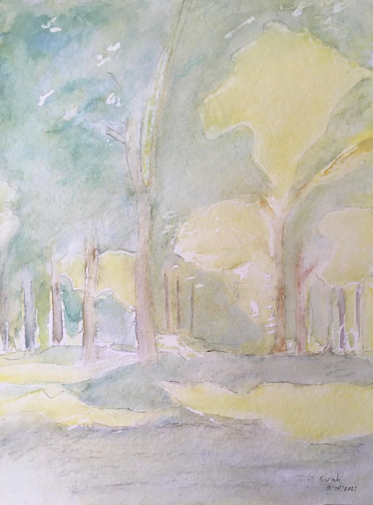 Aquarelle 30x40 cm représentant la Forêt de la Capelle les Boulogne.